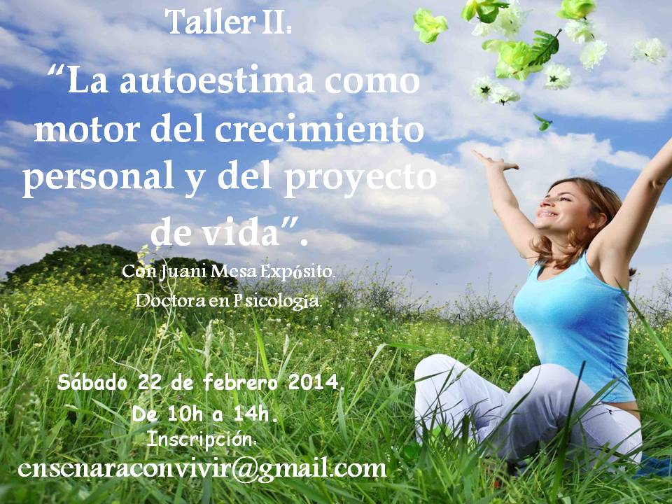 Este fin de semana realizo el segundo taller  sobre Autoestima. Lo he titulado «LA AUTOESTIMA COMO MOTOR DEL CRECIMIENTO PERSONAL Y DEL PROYECTO DE VIDA». Va dirigido a mujeres jóvenes entre 16 y 20 años y forma parte de un ciclo de formación compuesto por tres talleres: el primero sobre Autoestima y desempeño profesional, este segundo sobre proyecto de vida y el tercero que estará centrado en Autoestima y relaciones de pareja.